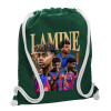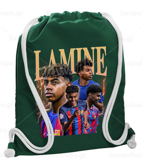 lamine yamal FCB, Backpack pouch GYMBAG BOTTLE GREEN, with pocket (40x48cm) & thick white cords