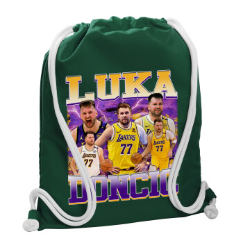 Luka Doncic Basketball , Backpack pouch GYMBAG BOTTLE GREEN, with pocket (40x48cm) & thick white cords