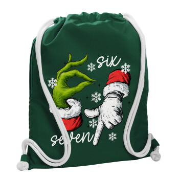 Christmas Meme SIX SEVEN (67), Backpack pouch GYMBAG BOTTLE GREEN, with pocket (40x48cm) & thick white cords