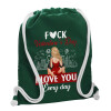 I love You Everyday , Backpack pouch GYMBAG BOTTLE GREEN, with pocket (40x48cm) & thick white cords