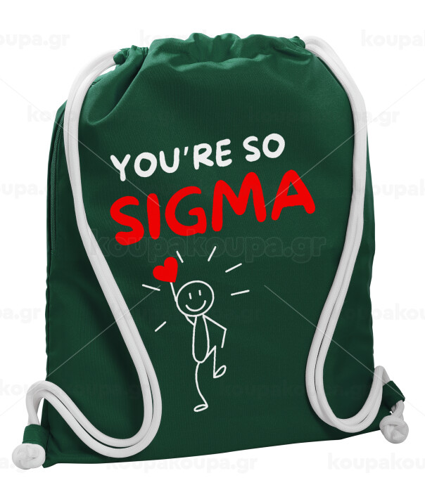 Sigma Valentine's Day , Backpack pouch GYMBAG BOTTLE GREEN, with pocket (40x48cm) & thick white cords