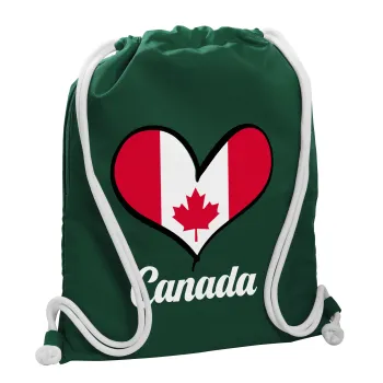 Canada flag, Backpack pouch GYMBAG BOTTLE GREEN, with pocket (40x48cm) & thick white cords