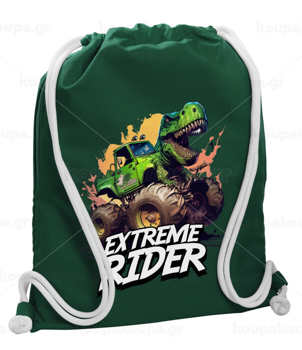 Extreme rider Dyno, Backpack pouch GYMBAG BOTTLE GREEN, with pocket (40x48cm) & thick white cords