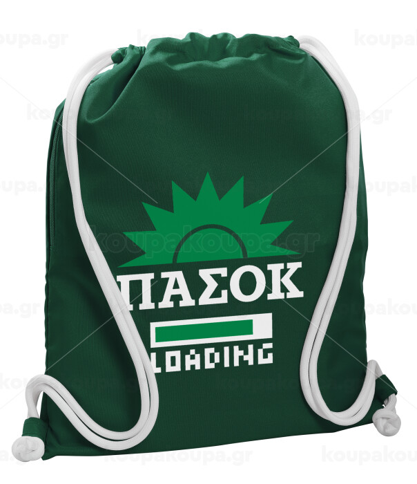PASOK Loading, Backpack pouch GYMBAG BOTTLE GREEN, with pocket (40x48cm) & thick white cords