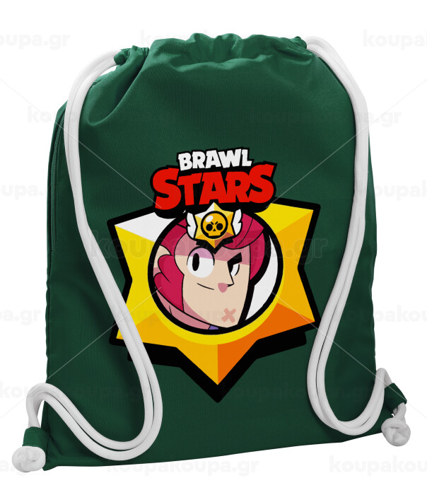 Brawl Stars Colt, Backpack pouch GYMBAG BOTTLE GREEN, with pocket (40x48cm) & thick white cords