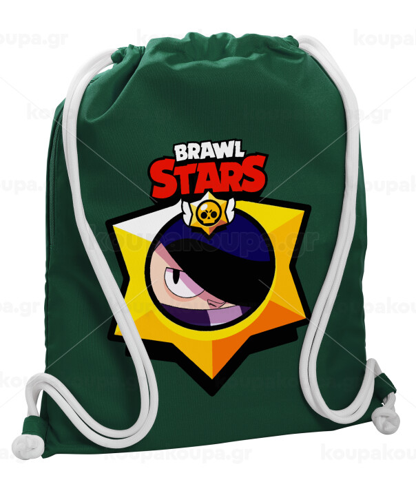 Brawl Stars Edgar, Backpack pouch GYMBAG BOTTLE GREEN, with pocket (40x48cm) & thick white cords