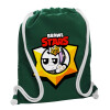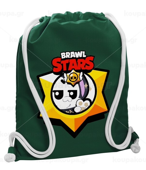 Brawl Stars Kit, Backpack pouch GYMBAG BOTTLE GREEN, with pocket (40x48cm) & thick white cords
