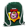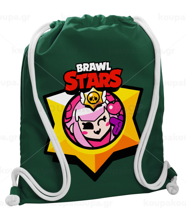 Brawl Stars Melodie, Backpack pouch GYMBAG BOTTLE GREEN, with pocket (40x48cm) & thick white cords