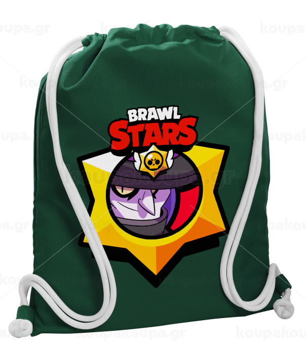 Brawl Stars Mortis, Backpack pouch GYMBAG BOTTLE GREEN, with pocket (40x48cm) & thick white cords