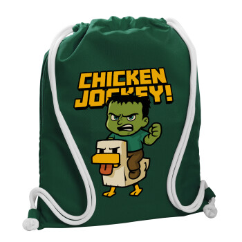 Chicken Jockey, Backpack pouch GYMBAG BOTTLE GREEN, with pocket (40x48cm) & thick white cords