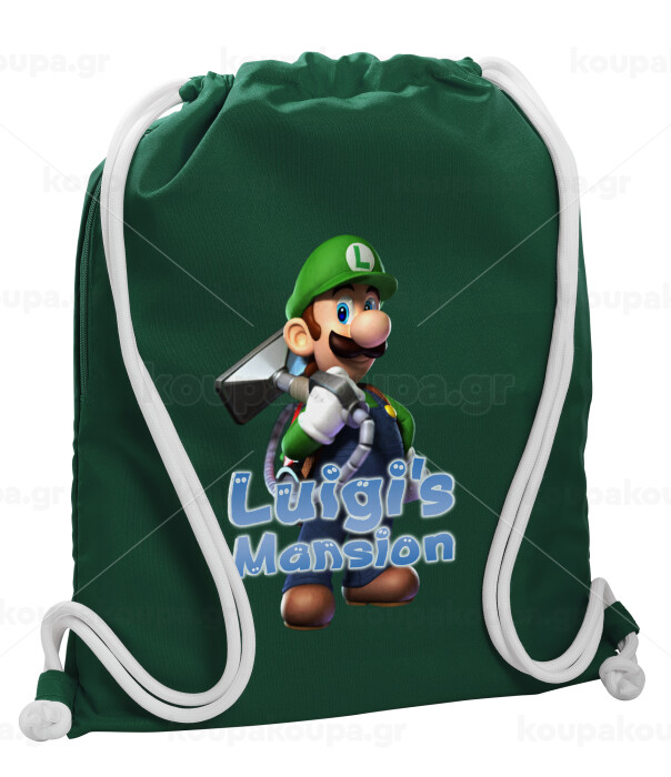 Luigi's Mansion, Backpack pouch GYMBAG BOTTLE GREEN, with pocket (40x48cm) & thick white cords