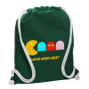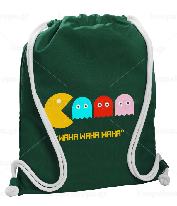 Pacman waka waka waka, Backpack pouch GYMBAG BOTTLE GREEN, with pocket (40x48cm) & thick white cords