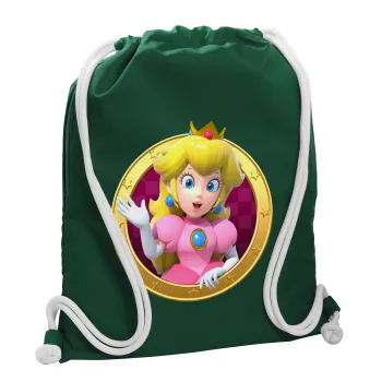 Princess Peach Toadstool, Backpack pouch GYMBAG BOTTLE GREEN, with pocket (40x48cm) & thick white cords