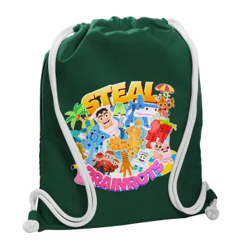 Roblox Steal a Brainrot, Backpack pouch GYMBAG BOTTLE GREEN, with pocket (40x48cm) & thick white cords