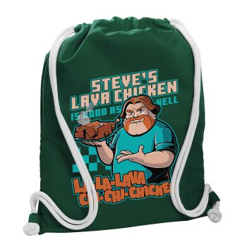 Steves Lava Chicken, Backpack pouch GYMBAG BOTTLE GREEN, with pocket (40x48cm) & thick white cords
