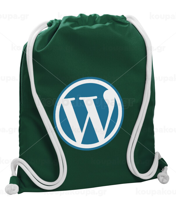 Wordpress, Backpack pouch GYMBAG BOTTLE GREEN, with pocket (40x48cm) & thick white cords
