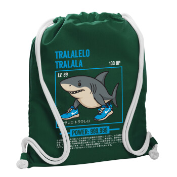 Tralalero Tralala, Backpack pouch GYMBAG BOTTLE GREEN, with pocket (40x48cm) & thick white cords