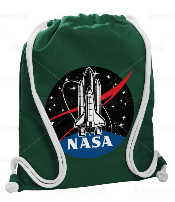 NASA Badge, Backpack pouch GYMBAG BOTTLE GREEN, with pocket (40x48cm) & thick white cords