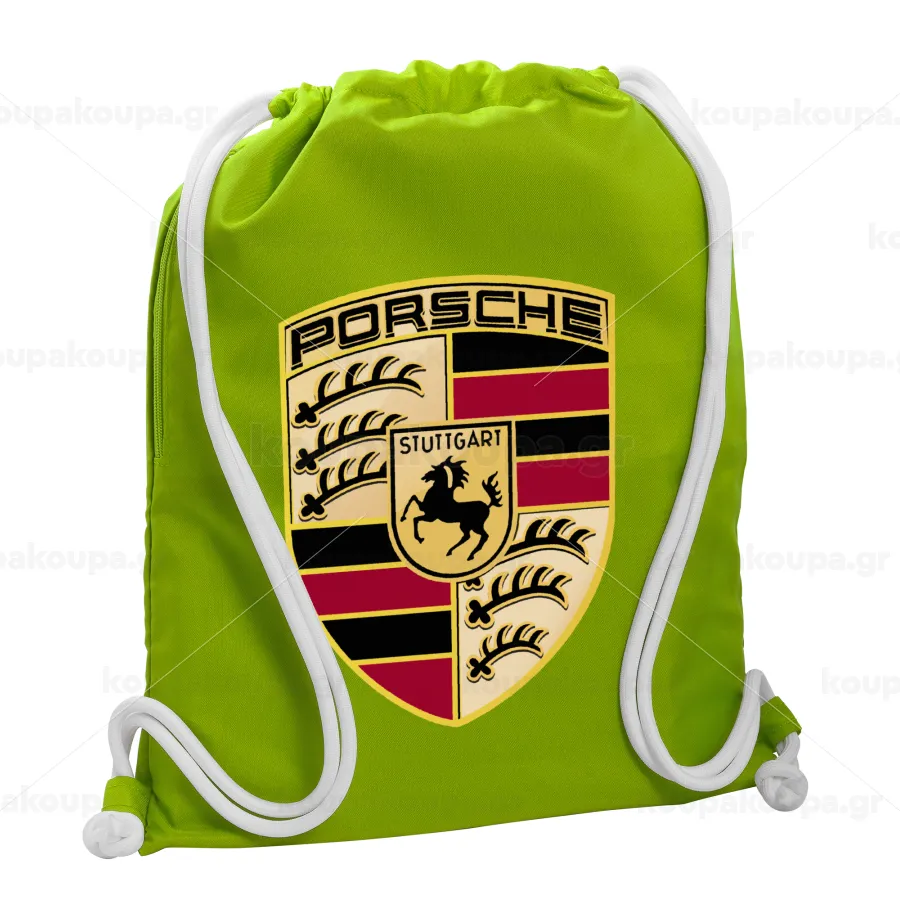 Porsche, Backpack bag GYMBAG LIME GREEN, with pocket (40x48cm) & thick cords