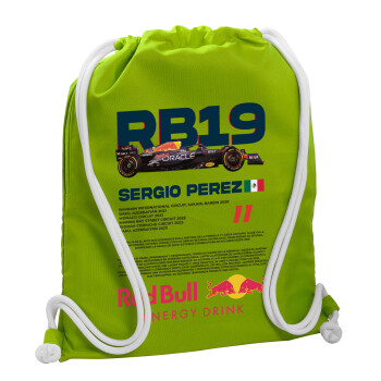 Redbull Sergio Perezi, Backpack bag GYMBAG LIME GREEN, with pocket (40x48cm) & thick cords
