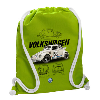 Volkswagen Beetle, Backpack bag GYMBAG LIME GREEN, with pocket (40x48cm) & thick cords