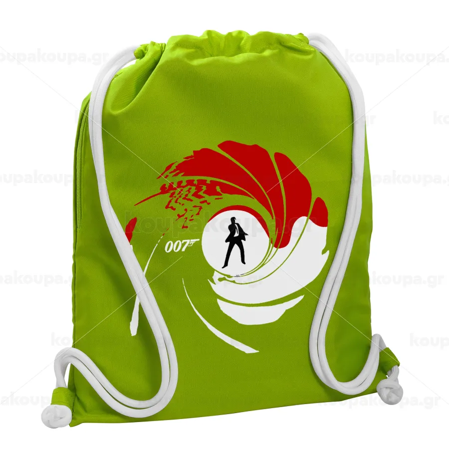James Bond 007, Backpack bag GYMBAG LIME GREEN, with pocket (40x48cm) & thick cords