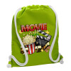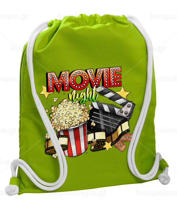 Movie night, Backpack bag GYMBAG LIME GREEN, with pocket (40x48cm) & thick cords