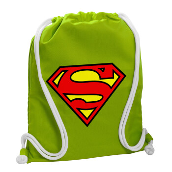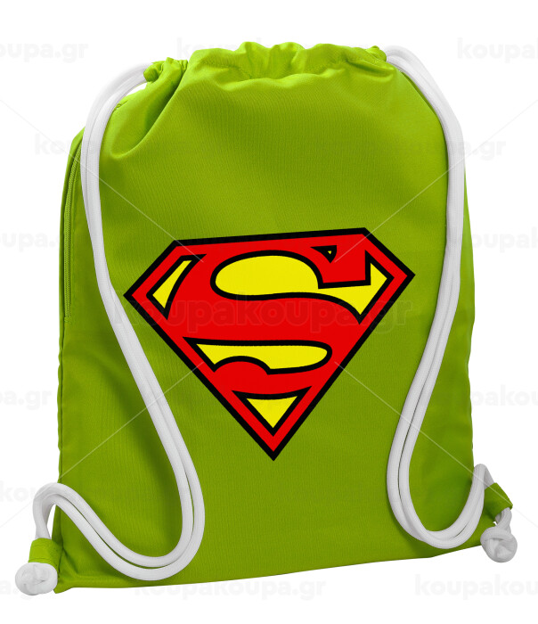 Superman vintage, Backpack bag GYMBAG LIME GREEN, with pocket (40x48cm) & thick cords