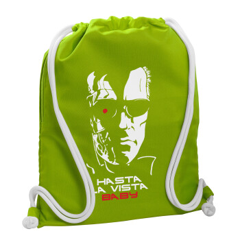 Terminator Hasta La Vista, Backpack bag GYMBAG LIME GREEN, with pocket (40x48cm) & thick cords
