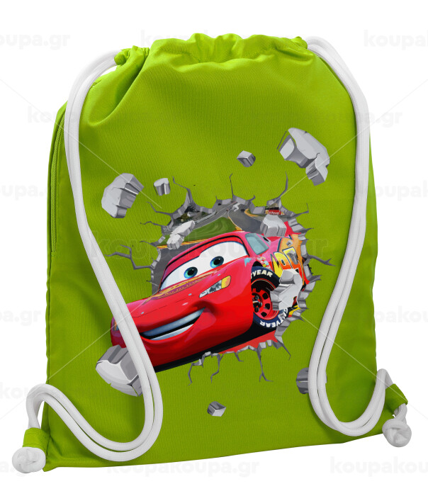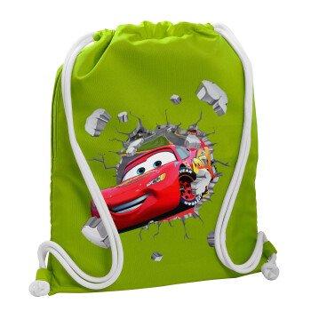 Brick McQueen, Backpack bag GYMBAG LIME GREEN, with pocket (40x48cm) & thick cords