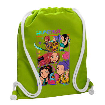 Huntrix Kpop Girls, Backpack bag GYMBAG LIME GREEN, with pocket (40x48cm) & thick cords