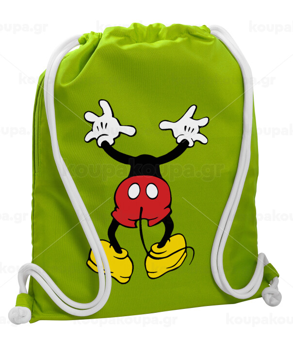 Mickey hide..., Backpack bag GYMBAG LIME GREEN, with pocket (40x48cm) & thick cords