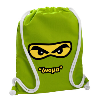 Ninja Eyes με όνομα, Backpack bag GYMBAG LIME GREEN, with pocket (40x48cm) & thick cords