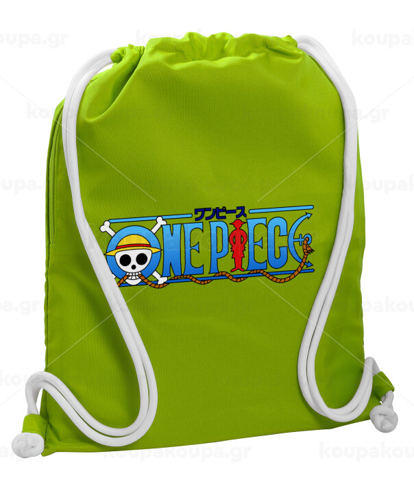 Onepiece logo, Backpack bag GYMBAG LIME GREEN, with pocket (40x48cm) & thick cords