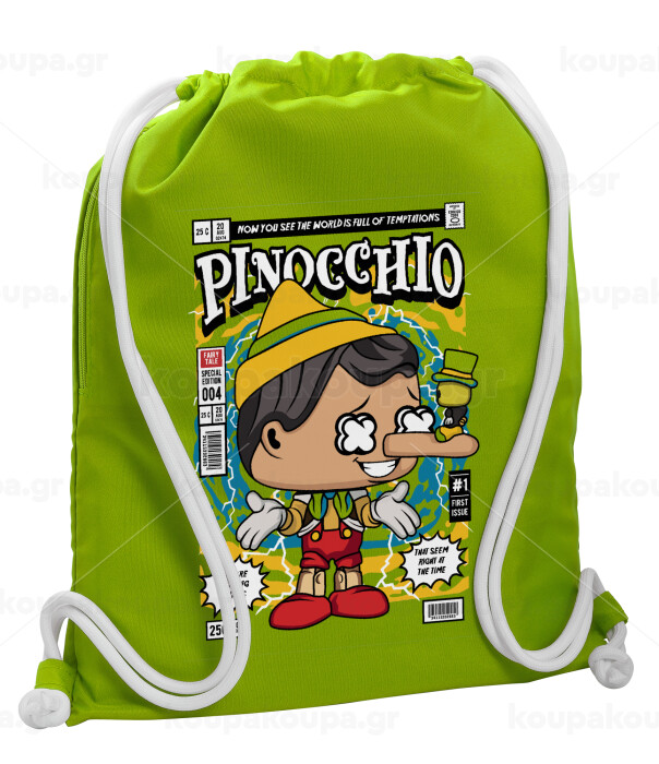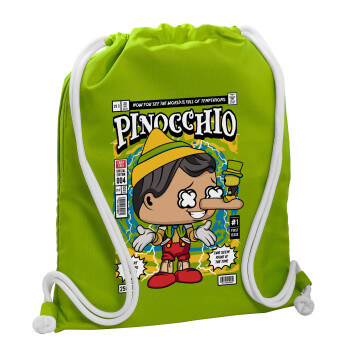 Pinocchio, Backpack bag GYMBAG LIME GREEN, with pocket (40x48cm) & thick cords