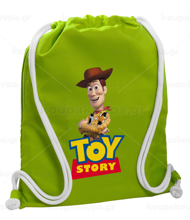 Woody cowboy, Backpack bag GYMBAG LIME GREEN, with pocket (40x48cm) & thick cords