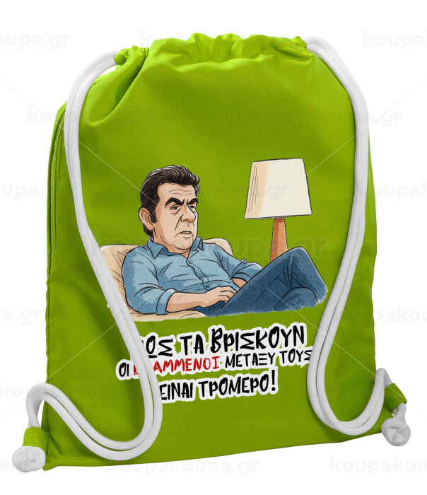 ΠΩΣ ΤΑ ΒΡΙΣΚΟΥΝ ΟΙ ΒΛΑ....ΝΟΙ ΜΕΤΑΞΥ ΤΟΥΣ, ΕΙΝΑΙ ΤΡΟΜΕΡΟ!!!, Backpack bag GYMBAG LIME GREEN, with pocket (40x48cm) & thick cords