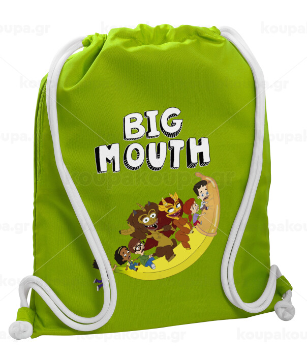 Big mouth, Backpack bag GYMBAG LIME GREEN, with pocket (40x48cm) & thick cords