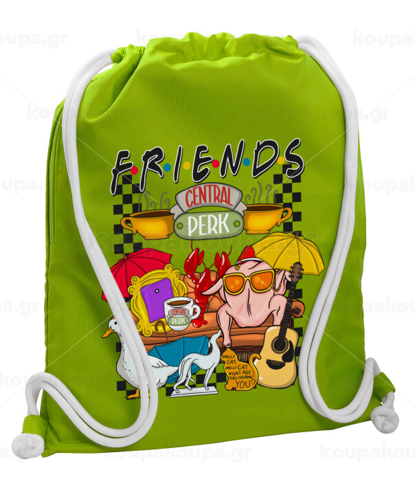 Friends, Backpack bag GYMBAG LIME GREEN, with pocket (40x48cm) & thick cords
