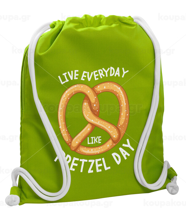 The office, Live every day like pretzel day, Backpack bag GYMBAG LIME GREEN, with pocket (40x48cm) & thick cords