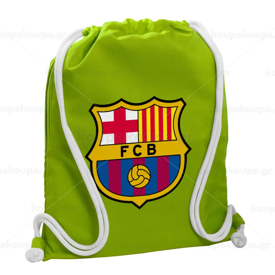 Barcelona FC, Backpack bag GYMBAG LIME GREEN, with pocket (40x48cm) & thick cords