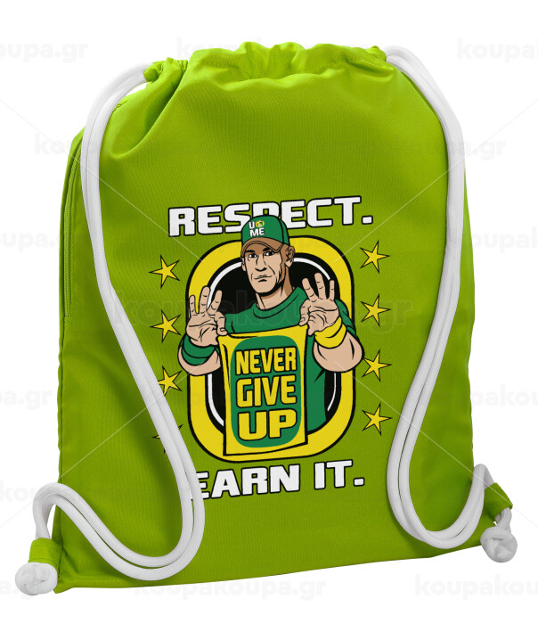 John Cena, Backpack bag GYMBAG LIME GREEN, with pocket (40x48cm) & thick cords