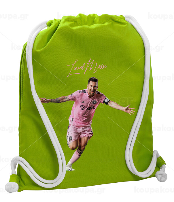 Lionel Messi inter miami jersey, Backpack bag GYMBAG LIME GREEN, with pocket (40x48cm) & thick cords