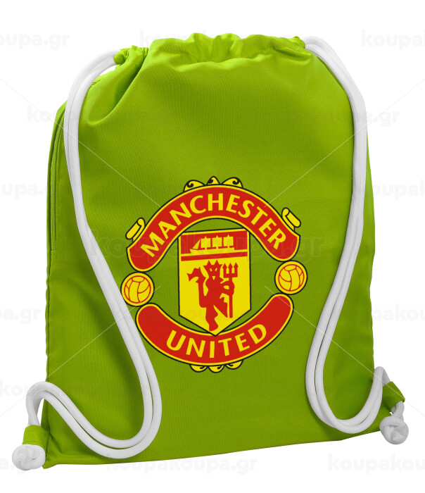 Manchester United F.C., Backpack bag GYMBAG LIME GREEN, with pocket (40x48cm) & thick cords
