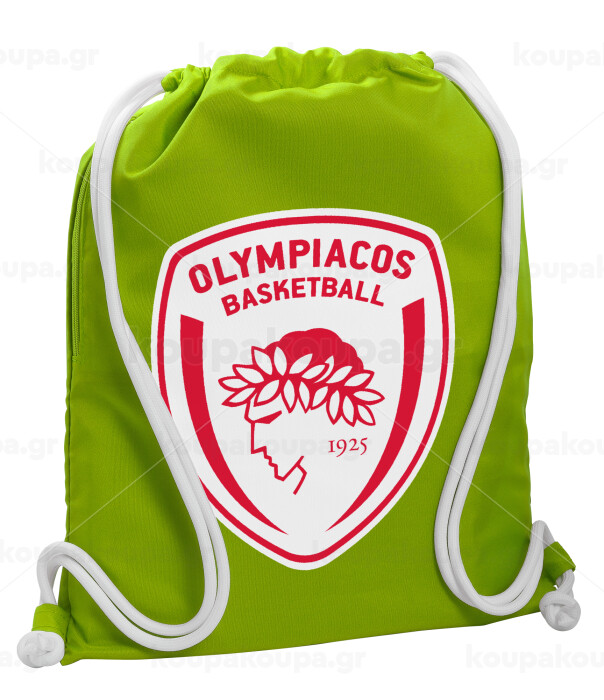 Olympiacos B.C., Backpack bag GYMBAG LIME GREEN, with pocket (40x48cm) & thick cords