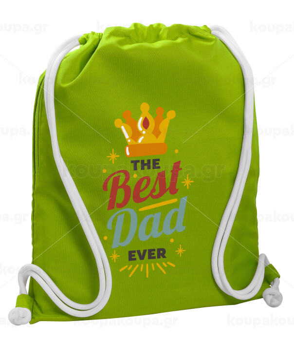 The Best DAD ever, Backpack bag GYMBAG LIME GREEN, with pocket (40x48cm) & thick cords