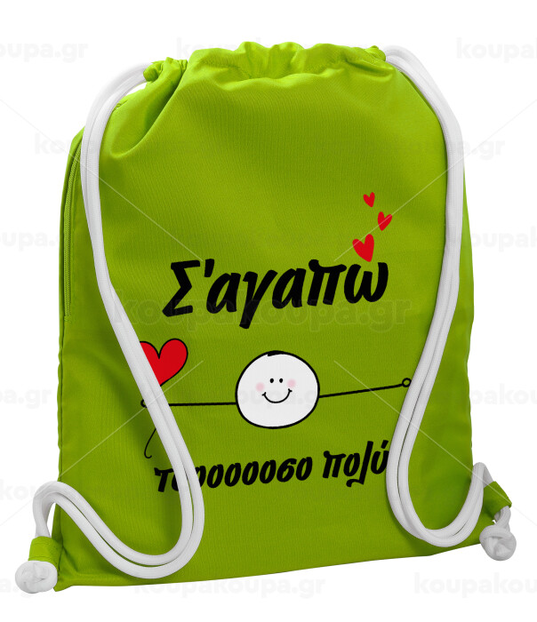 Σ΄αγαπώ τόοοοσο πολύ (Αγόρι)!!!, Backpack bag GYMBAG LIME GREEN, with pocket (40x48cm) & thick cords