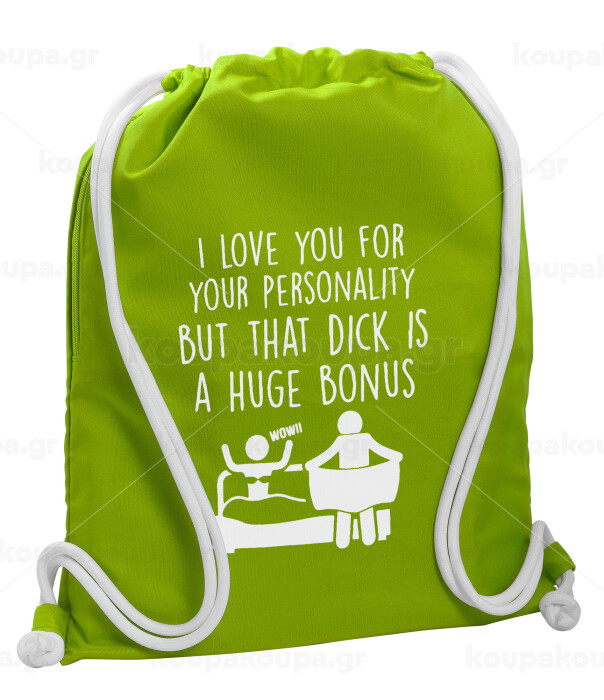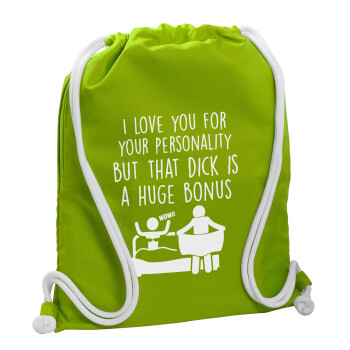 I Love You for Your Personality But that D... Is a Huge Bonus , Backpack bag GYMBAG LIME GREEN, with pocket (40x48cm) & thick cords