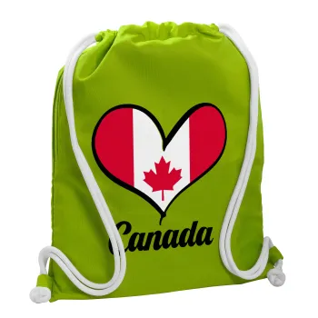 Canada flag, Backpack bag GYMBAG LIME GREEN, with pocket (40x48cm) & thick cords