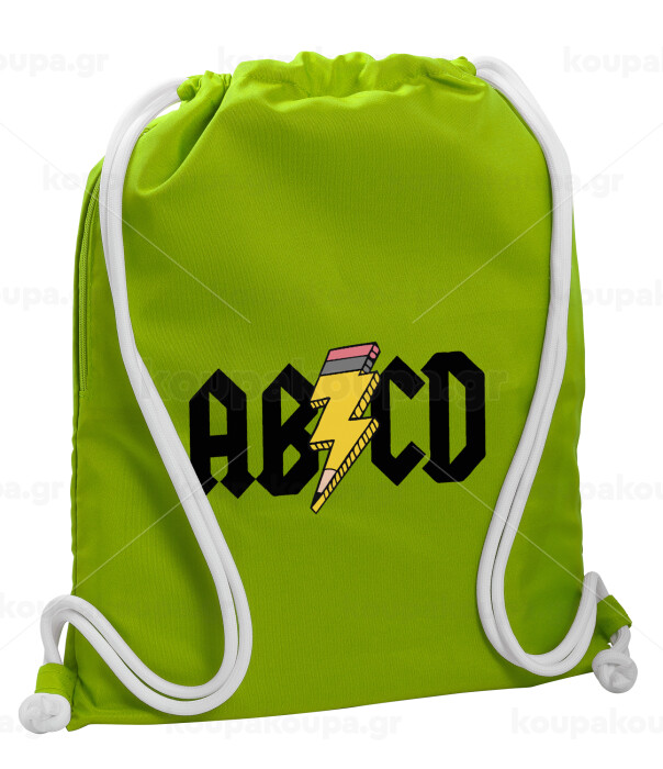 ABCD, Backpack bag GYMBAG LIME GREEN, with pocket (40x48cm) & thick cords